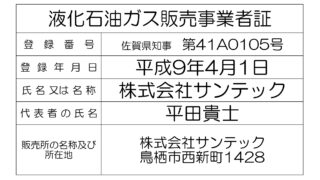液化石油ガスの保安の確保及び取引の適正化に関する法律の改正に伴う、液化石油ガス販売事業者標識の掲載について